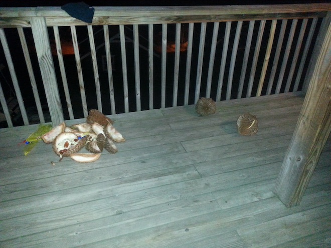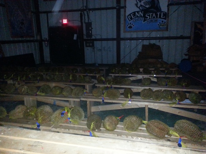 All those salads were amazing, but I still think at the end of the day everyone was just there for the abundance of durian. On the night of the talent show they brought all the durian up to the rec hall and after the show we all picked one (or two or five depending on who you were) and GORGED.