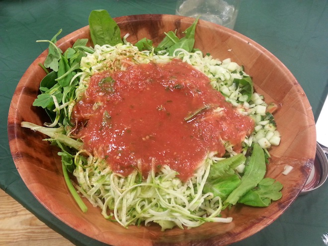 I also partook in the amazing salad bar that happened every night! Each night had a different theme, and I was pretty surprised by how delicious all the low fat raw vegan salad dressings were - mostly because as it turns out my own salad dressing imagination is just super limited. They blended many fruits and veggies together in different combinations. This here was marinara that contained tomatoes and mangoes: