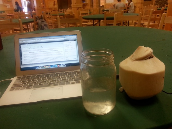 Since I was not working in the kitchen the second week, I did try to get on my computer and do some e-mails and blog stuff during my mornings. I also kept up with my daily coconut habit - of course.