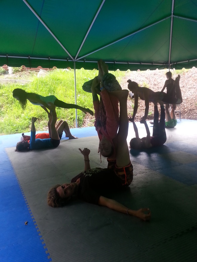 Due to the fact that being on Admin was so much more relaxed than being in the kitchen, I actually did a few more activities in the afternoons when I was off. One day I went to acro yoga and had a super fun time being "The flyer" with Ryan:
