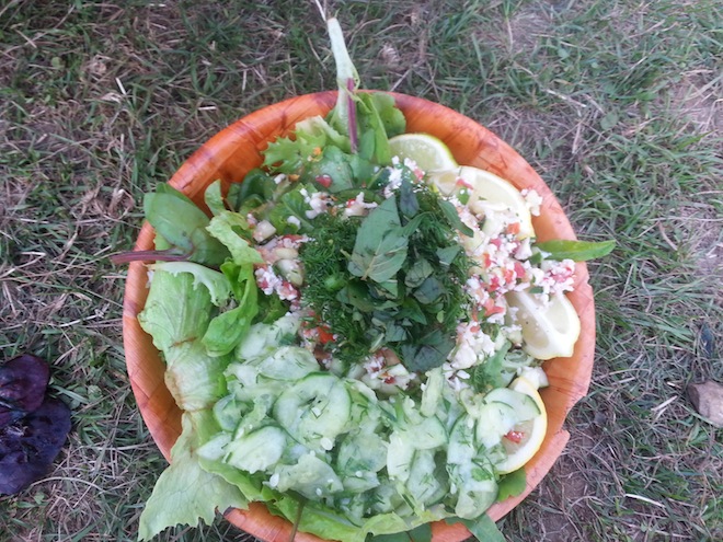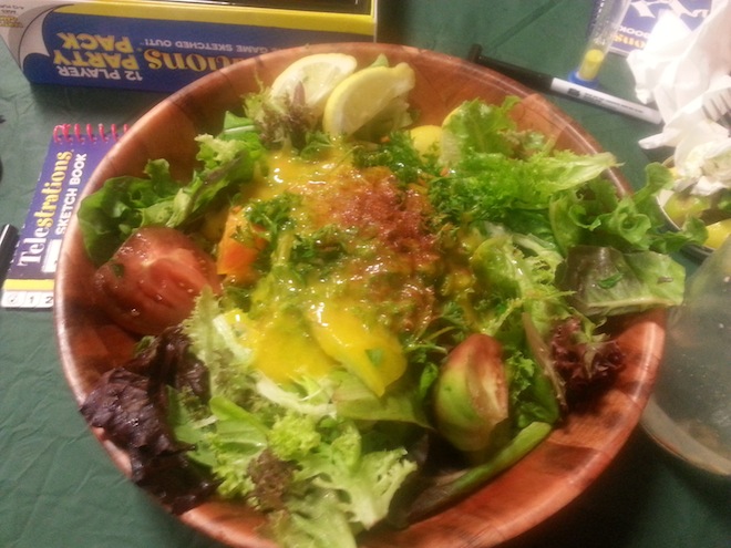 There was always a plethora of greens, chopped veggies, limes, lemons and herbs so you could construct your own salad if you didn't want the dressing or whatever else was being served: