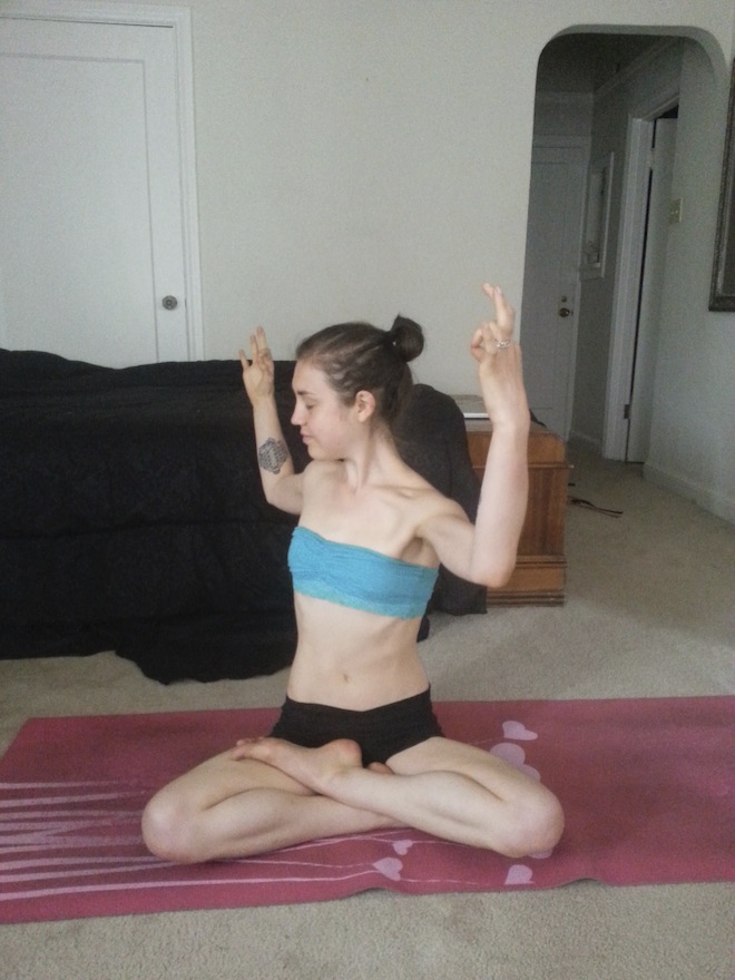 Following that 11 minute sit, I move my arms so that they are extended straight out in front of me, still repeating my mantra for 3 minutes.