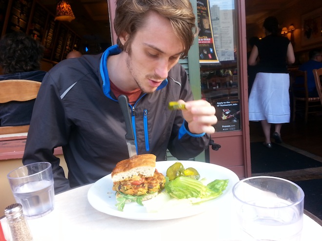 He ordered the Veggie burger. While it was tasty, he essentially complained to me the entire time about how hard it was to eat because it kept falling apart, and was therefore messy. Apparently this is a really big deal? I don't really understand due to the fact that I generally walk away from my meals with fruit in my hair and on my shoulder.
