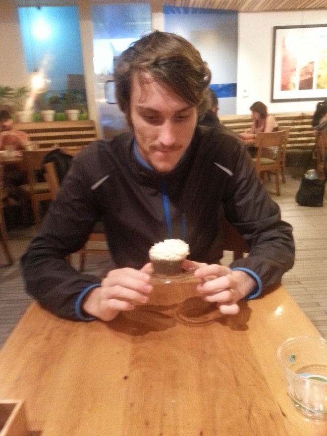 Then, to make up for the burger debacle, we went to Plant Cafe and Marcus got himself a Vegan Chocolate cupcake: