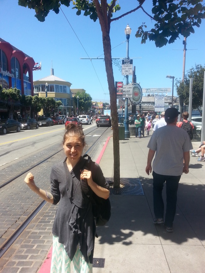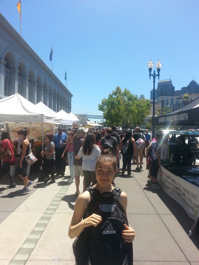 Then we were off to the Ferry Building Farmers Market! I am a farmers market junky, and I convince Marcus we need to go to one pretty much every weekend. We decided to walk the sea wall to get there this week, and that meant going through Fishermans Warf. It was totally and completely insane: