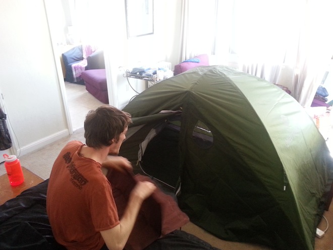 While I was taking a million photos of food, because that is a super important thing I must do putting all out produce away, Marcus was setting up our new tent in the living room. Just average.