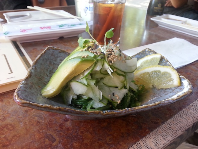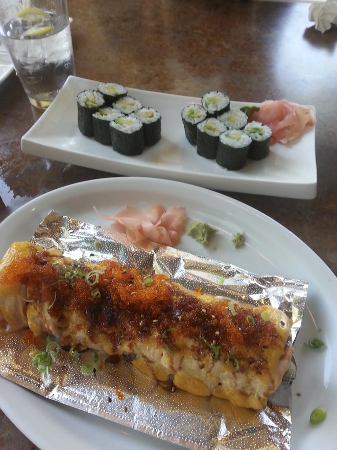 Sammi ordered her traditional Avocado rolls, and Marcus got something really gross with fish A salmon something rather: