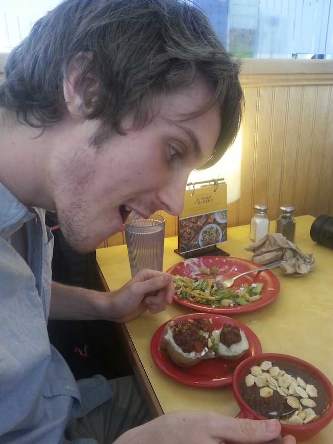 Marcus had several rounds of salad, soup, and baked potatoes: