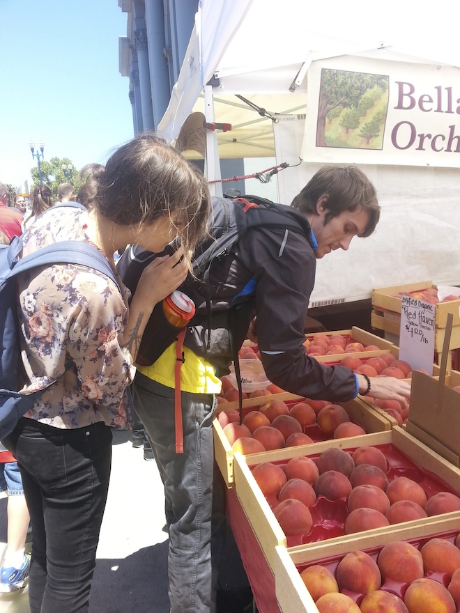The produce was amazing as usual. Marcus could not help himself and decided he needed a peach: